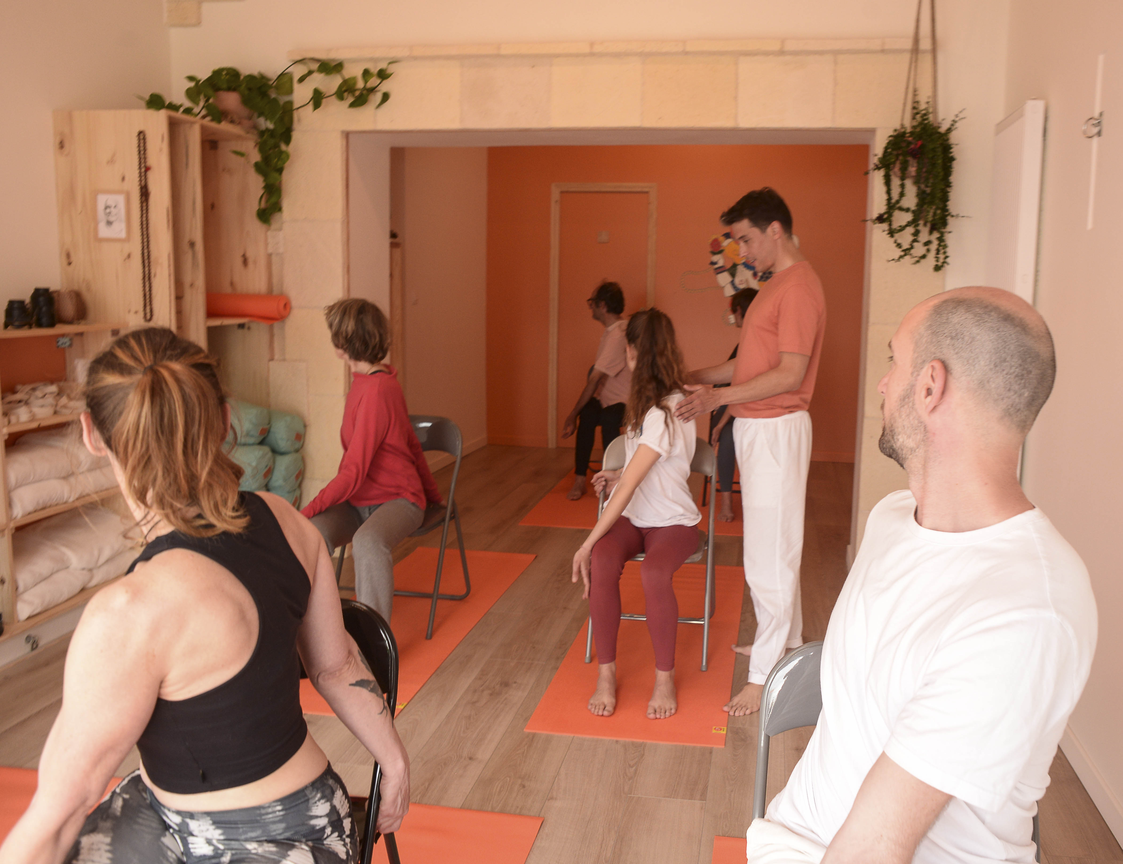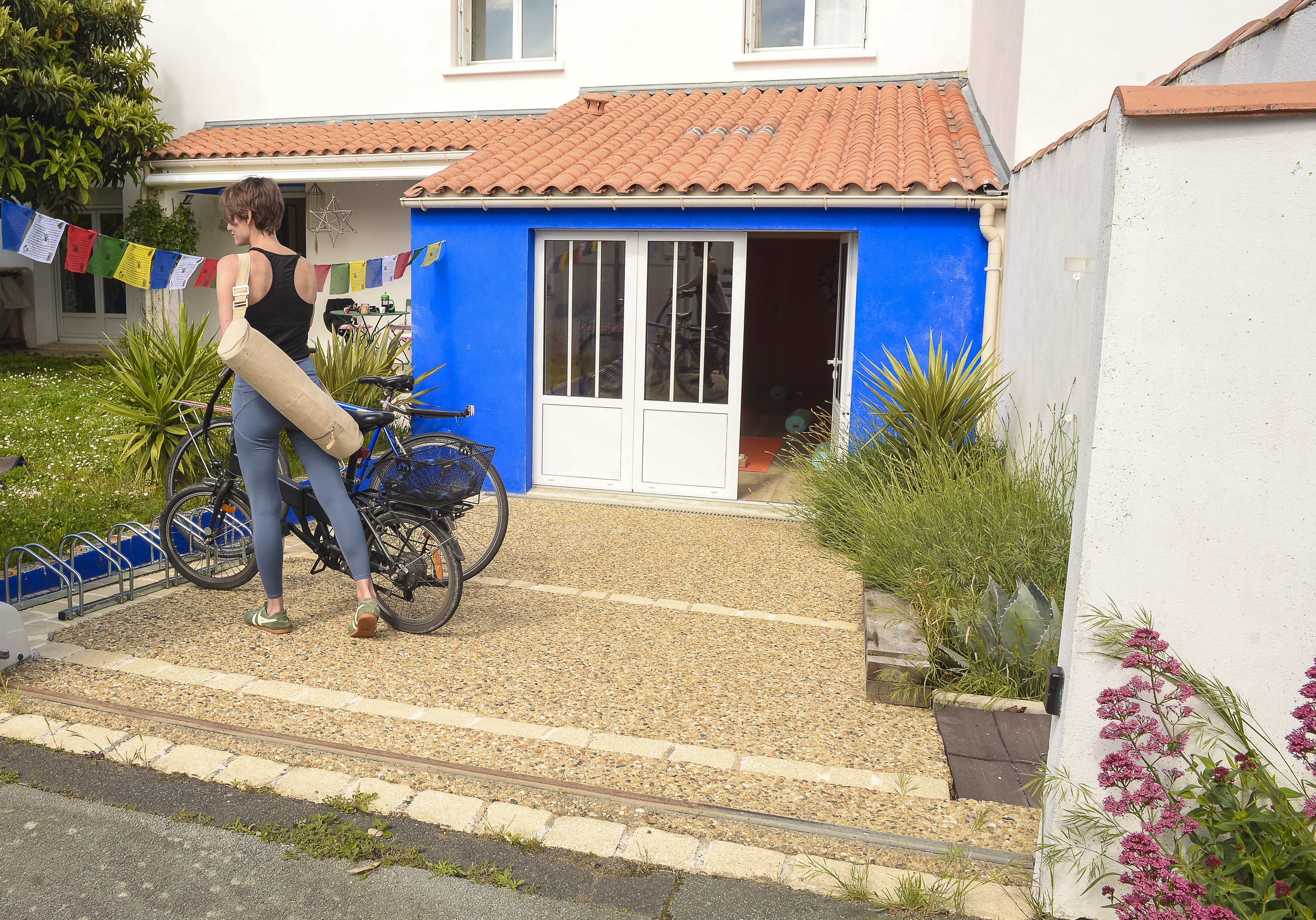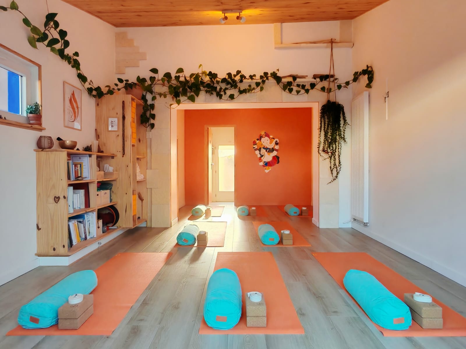 J’ai construis moi-même cette salle de yoga intimiste pour créer un espace à l’énergie unique. Elle peut accueillir huit élèves par cours.